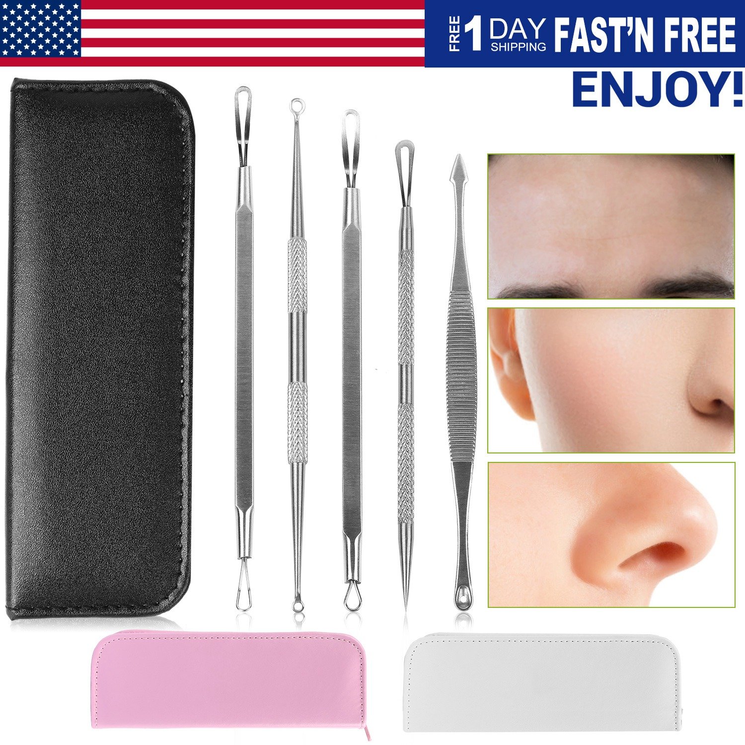 Home > 5 Pcs Blackhead Remover Kit Pimple Comedone Extractor Tool Set Stainless Steel Facial Acne Blemish Whitehead Popping Zit Removing for Nose Face Skin C